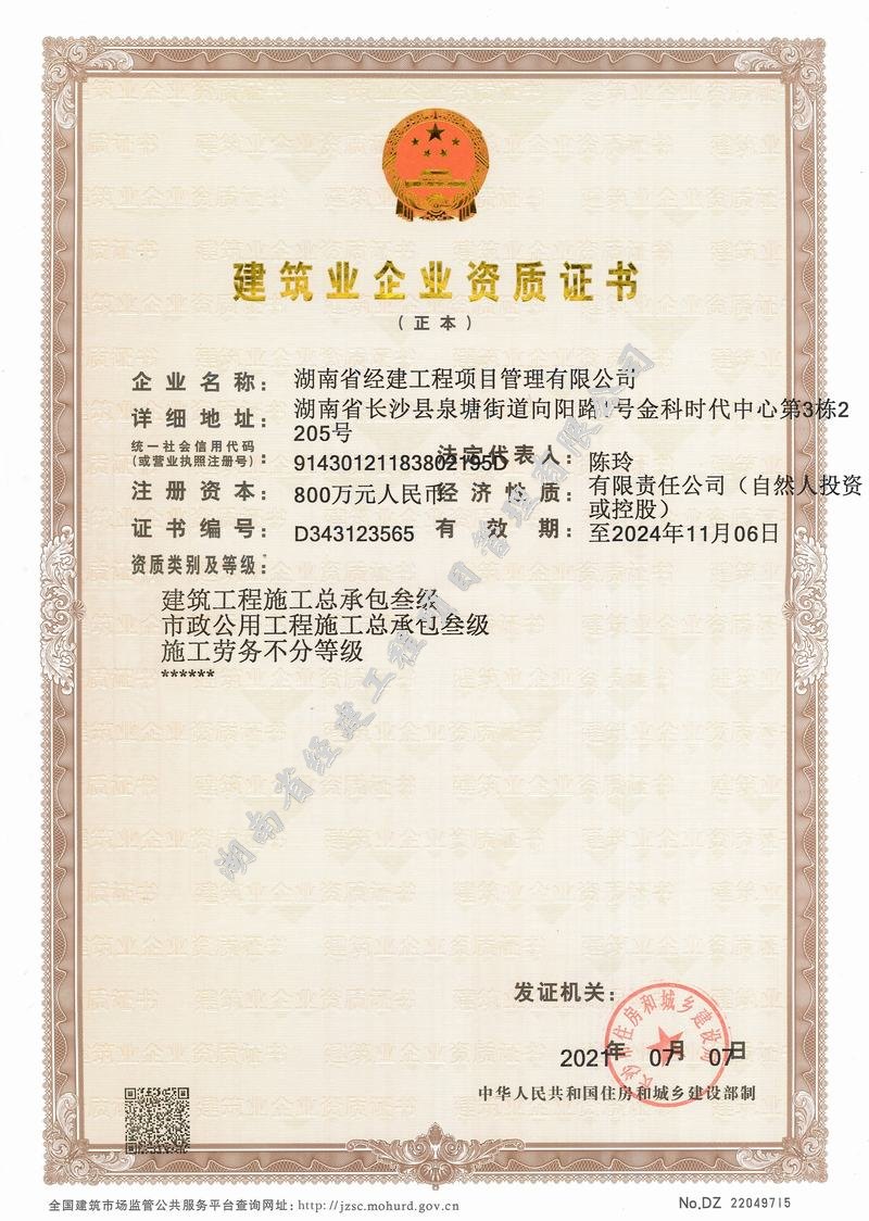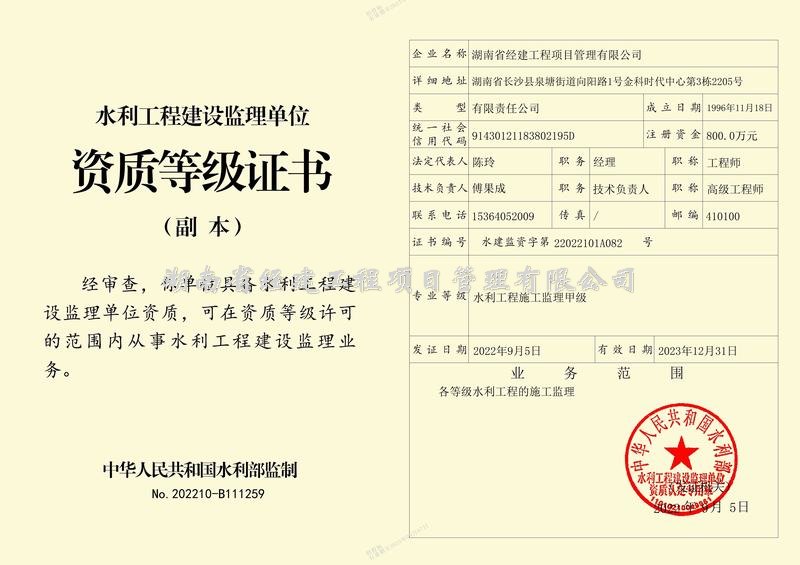 湖南省經(jīng)建工程項目管理有限公司是經(jīng)湖南省工商局注冊成立,按現(xiàn)代企業(yè)制度組建的股份制有限責任公司。公司主要經(jīng)營范圍為:房屋建筑工程監(jiān)理、市政公用工程監(jiān)理、水利工程施工監(jiān)理、招標代理、項目代建、工程造價、建筑工程施工總承包、市政公用工程施工總承包、施工勞務等。目前公司具有房屋建筑工程監(jiān)理甲級資質(zhì),市政公用工程監(jiān)理甲級資質(zhì)和水利工程施工監(jiān)理甲級資質(zhì)、建筑工程施工總承包叁級資質(zhì)、市政公用工程施工總承包叁級資質(zhì)、人民防空工程建設監(jiān)理丙級、工程造價咨詢乙級資質(zhì)。公司注冊資金800萬元,公司下設有衡陽分公司、藍山分公司、常德分公司、岳陽分公司、湘西分公司、東莞分公司、貴陽分公司。公司內(nèi)下設總工辦、工程部、經(jīng)營部、財務部、人力資源部、綜合辦公室。公司技術力量雄厚、專業(yè)配套齊全,擁有建筑結構、建筑施工、工程設計、通信、暖通、給排水、機電、弱電、園林、預結算等專業(yè)的技術管理人才共145人,其中高級工程師21名,工程師80多名,且多為30歲以上50歲以下的中青年技術骨干。這些人員大部分來自國內(nèi)著名高等院校、國家大型甲級設計院以及國家特大型施工企業(yè),許多人具有國家一級注冊結構師、一級注冊建筑師、國家注冊造價師、一級注冊建造師、國家注冊監(jiān)理工程師等執(zhí)業(yè)資格,他們曾參加過國家特大型和大型工程的設計、施工、管理工作,具有豐富的工程設計、工程施工、工程招投標和工程管理經(jīng)驗,他們是進行工程項目管理的技術保證。