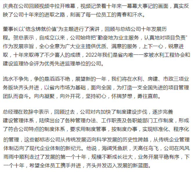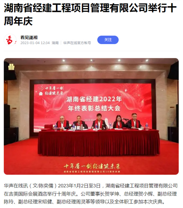 2022年1月25日,公司在長沙縣明城國際大酒店舉行“乘風破浪夢想啟航”年終總結表彰大會。 湖南省經建工程項目管理有限公司,向辛勤工作、無私奉獻、銳意...