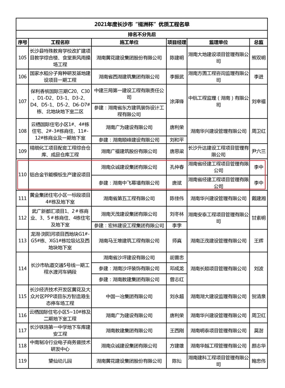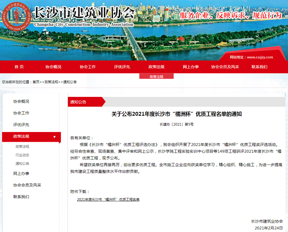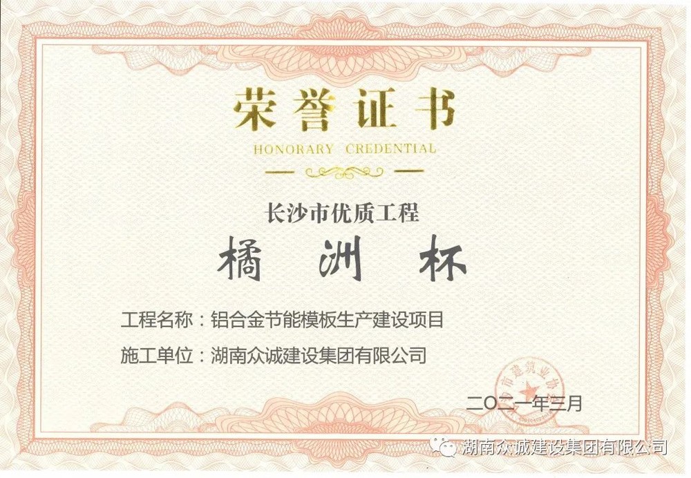 2021年度長沙市“橘洲杯”優質工程(鋁合金)