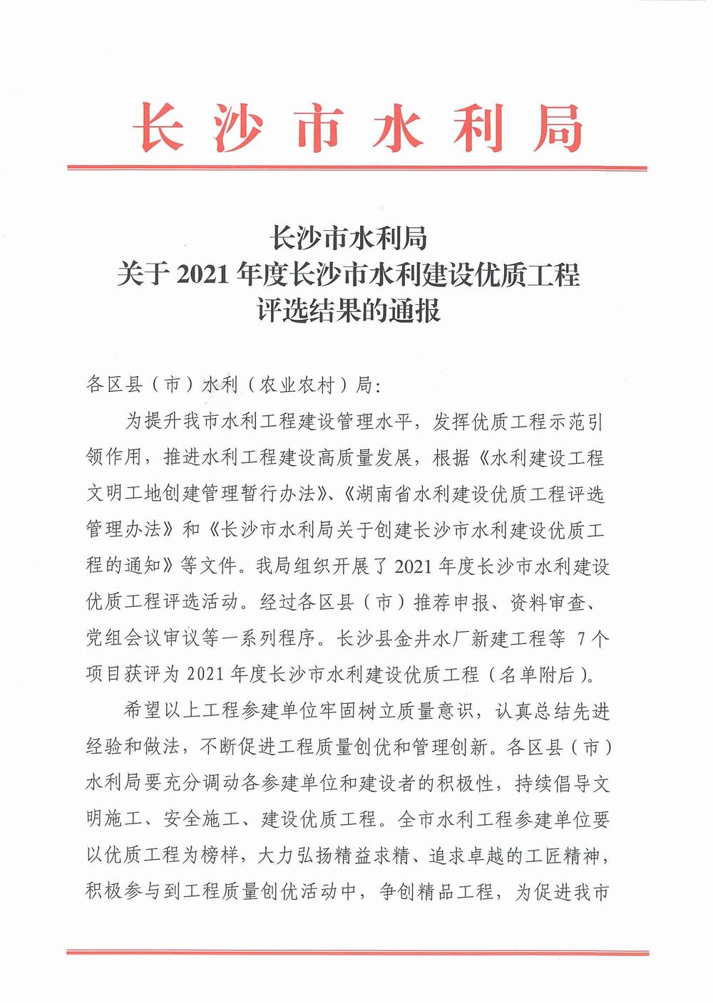 關于2021年度長沙市水利建設優質工程評選結果的通報.pdf