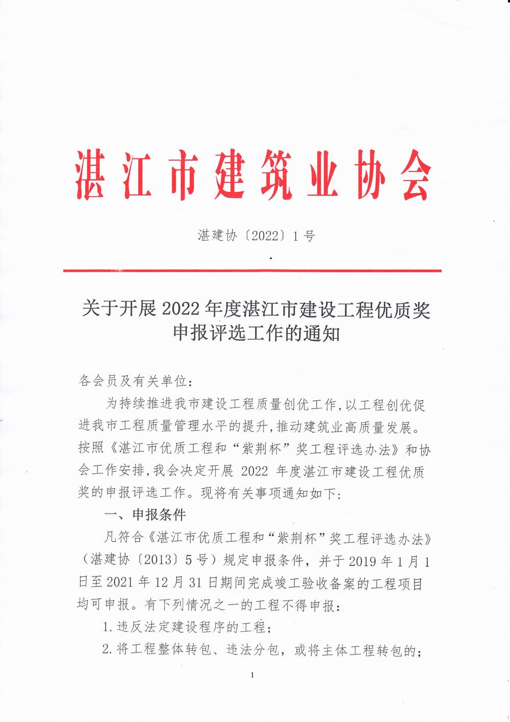 2022年度湛江市建設工程優(yōu)質獎申報評選工作的通知